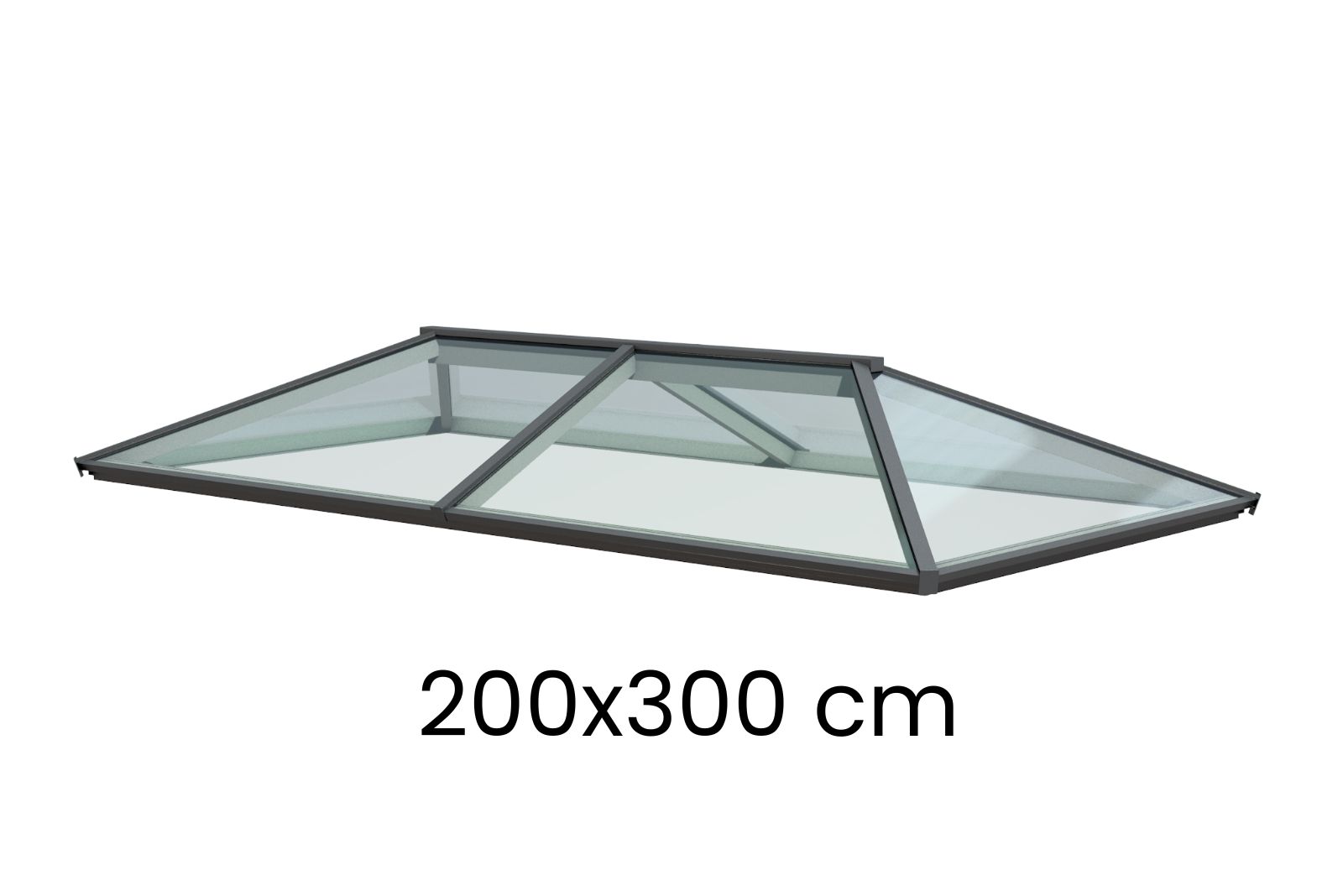 Vergeet niet dat de afmetingen van onze lichtstraten de afmetingen zijn van het onderste (interne) glaspaneel. Het bovenste paneel is aan elke kant 100 mm getrapt, en de totale zichtbare buitenmaat is 200 mm groter in beide richtingen: