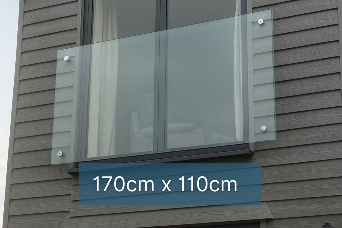 Frameloos Juliet Balkon Systeem – 170 cm x 110 cm met Glasklemmen