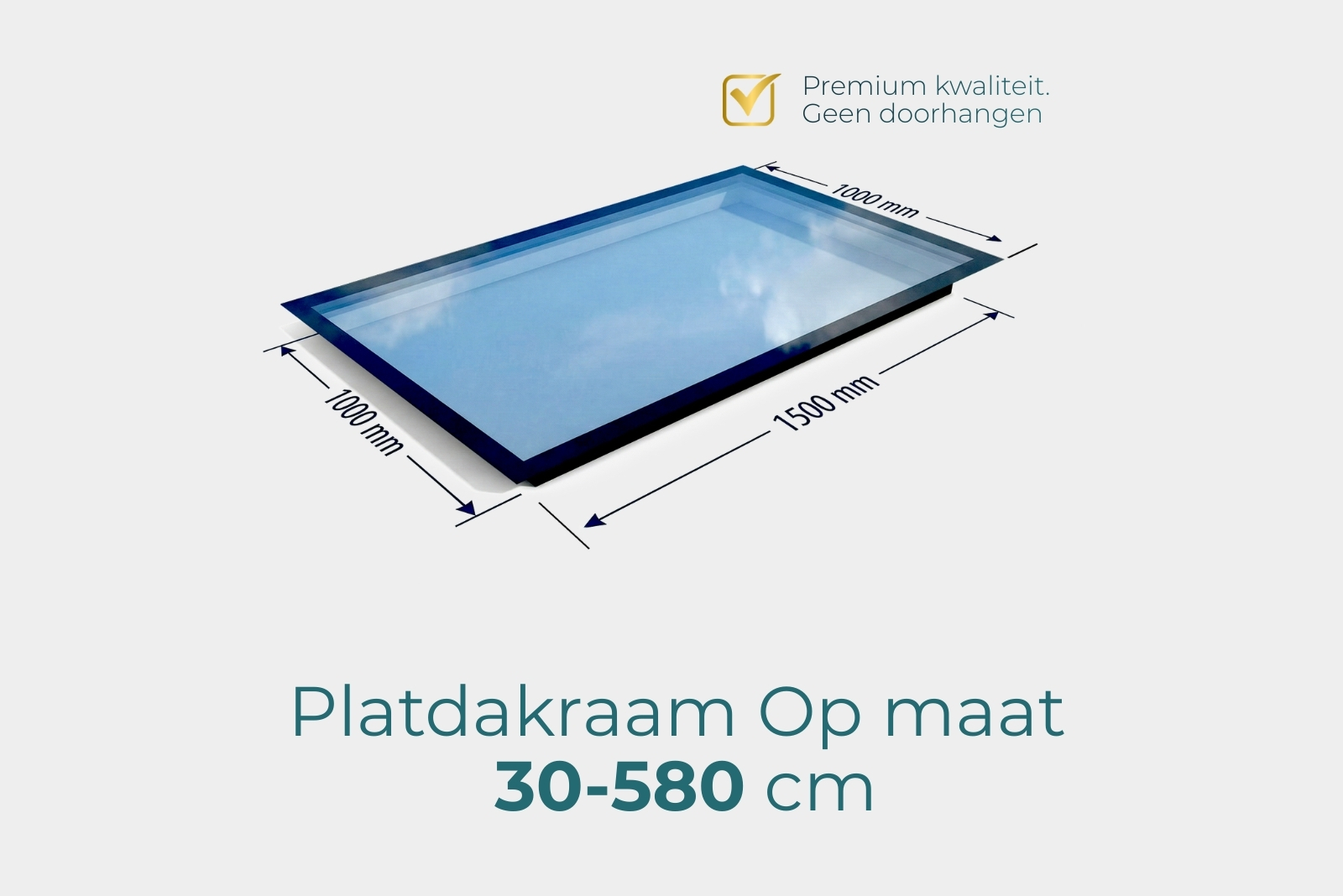 Platdakraam op maat 30-580cm – Overmaats, Driedubbel glas, U-waarde: 0,9 W/m²K