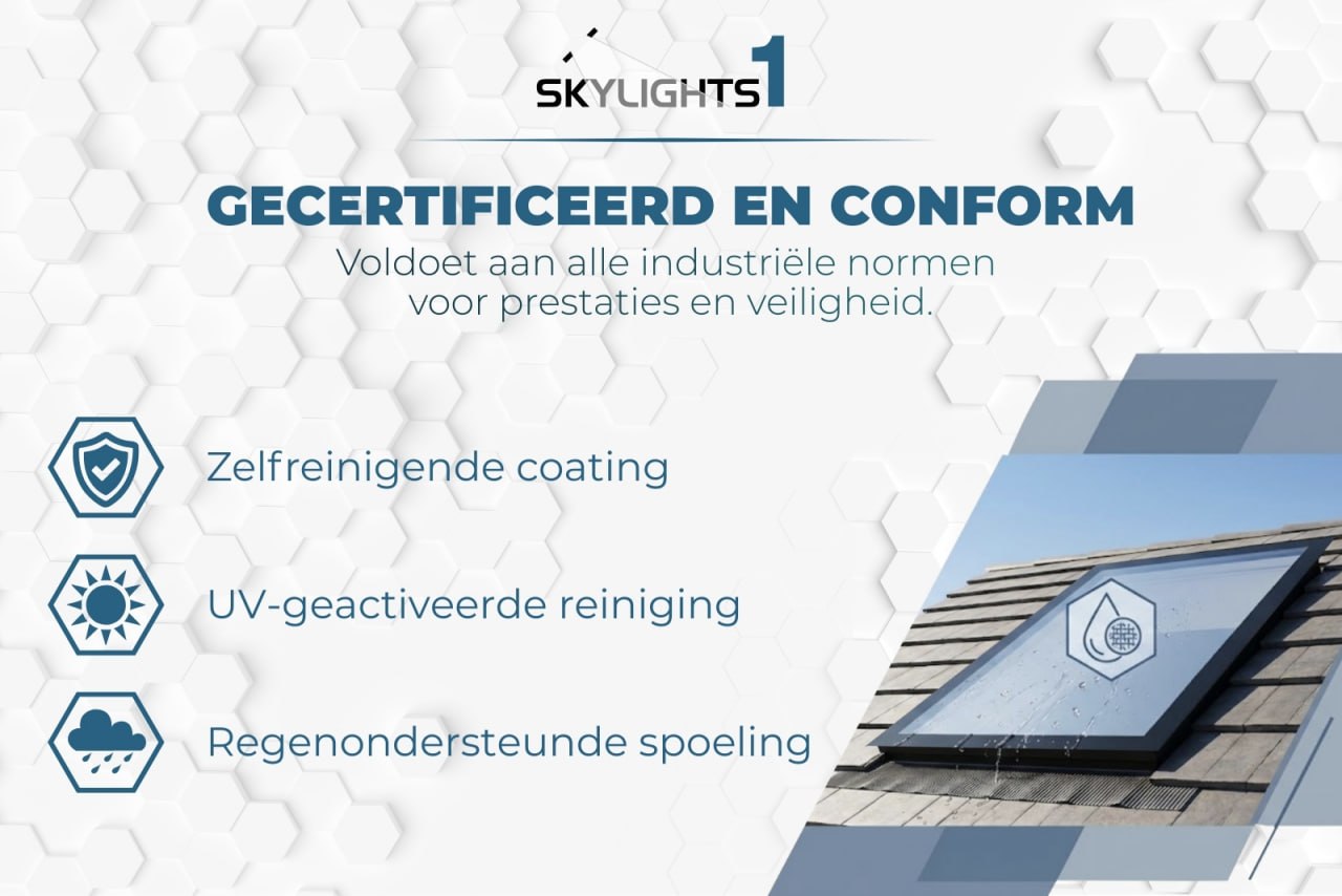Wanneer u een daklicht voor uw huis kiest, weten we dat veiligheid een belangrijke beslissende factor is. Dit product voldoet aan de Nederlandse normen en bouwvoorschriften en heeft alle veiligheidsmarkeringen. Het is CE gemarkeerd, wat een certificatiemerk is dat aangeeft dat het product voldoet aan de relevante EU-richtlijnen en -normen voor producten die binnen Europa worden verkocht. Onze daklichten kunnen worden geïnstalleerd met een maximale helling van 45 graden.